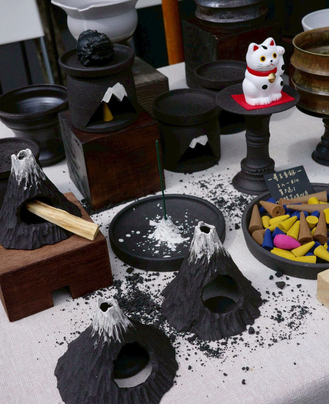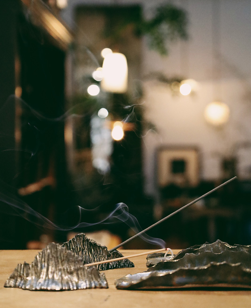 線香座平視是中央山脈、俯視是台灣的形狀,這是我們的島嶼,我們的山。承載香灰的盤,是四面環海的意象,是美麗的海上島嶼。